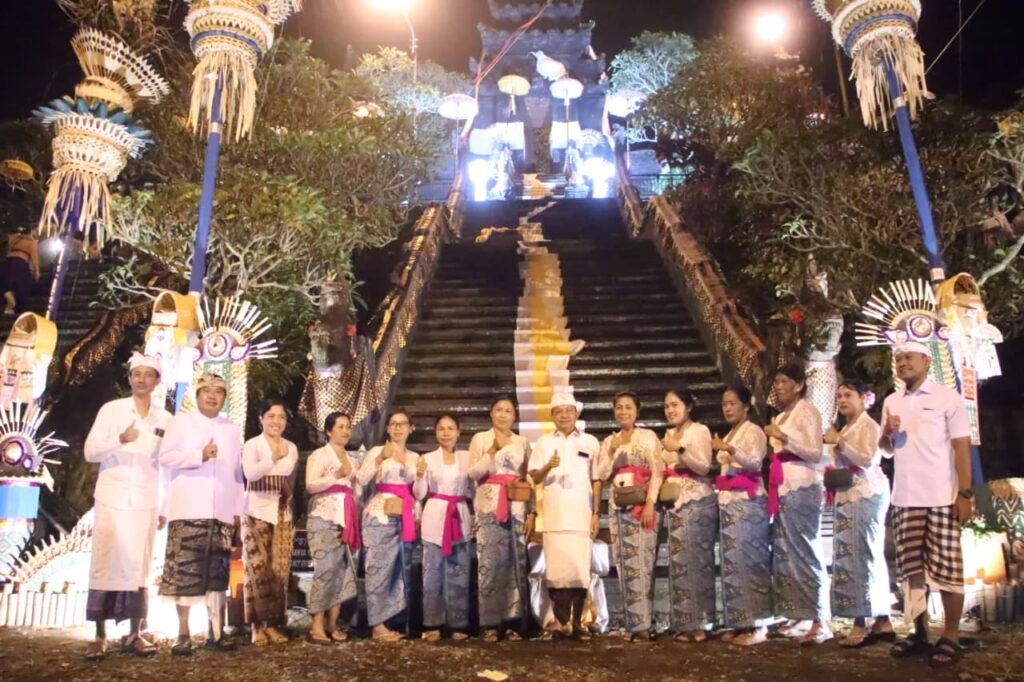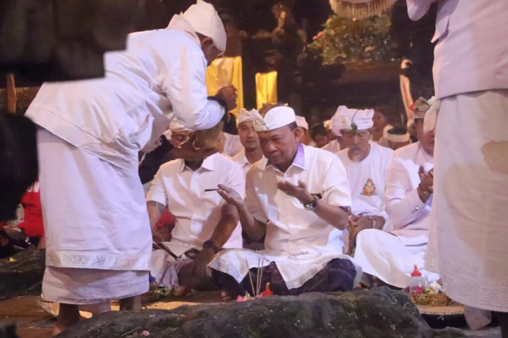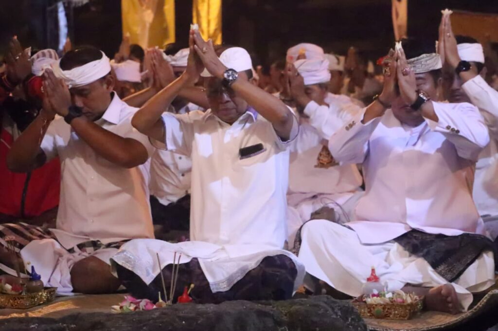 Dalam kesempatan tersebut, Gubernur Bali Wayan Koster berbaur bersama masyarakat pengempon dan pemedek melaksanakan persembahyangan bersama, memohon keselamatan, keharmonisan, serta kesejahteraan bagi masyarakat Bali dan alam semesta.