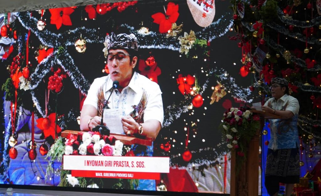 Wagub Bali, I Nyoman Giri Prasta yang mewakili Gubernur Bali, Wayan Koster dalam sambutannya berharap Perayaan Natal 2025 yang digelar oleh Musyawarah Pelayanan Umat Kristen (MPUK) Kabupaten Badung ini menjadi momentum kita semua untuk melaksanakan 4 Pilar Kebangsaan, yaitu Undang – Undang Dasar 1945, Pancasila, Bhinneka Tunggal Ika dan menjaga NKRI.