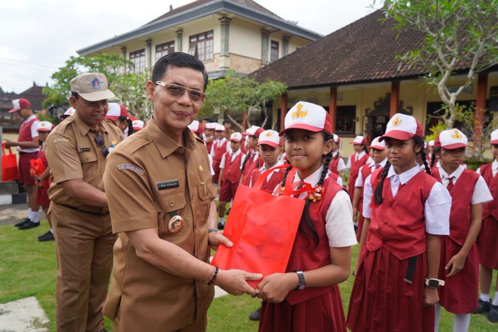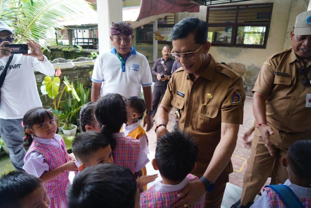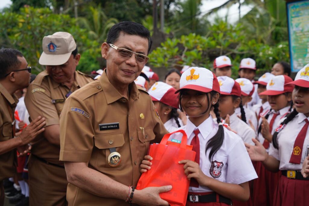 Suasana gembira dan penuh antusias menyambut kehadiran Bupati Klungkung, I Made Satria saat mengunjungi Sekolah Dasar (SD) di Desa Tohpati dan Desa Bungbungan, Kecamatan Banjarangkan, Kabupaten Klungkung, Senin (5/1). Kunjungan ini menjadi bagian dari upaya Pemerintah Kabupaten (Pemkab) Klungkung dalam memperkuat mutu pendidikan dasar, baik dari aspek akademik, fasilitas, dan pembentukan karakter.
